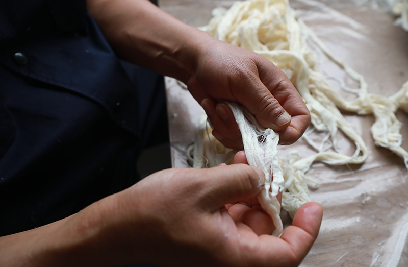 2003年,朱建新在廣泛學習手工紙制作技藝后,在休寧縣南街(玉寧街117號)建手工紙紙坊,開始恢復休寧楮皮紙的生產(chǎn)。2016年,因城市改造拆遷,紙廠移至海陽鎮(zhèn)下汶溪村重建,并注冊成立了黃山市凝霜文化發(fā)展有限公司擬建休寧手工皮紙歷史文化展示館、體驗館、紙藝館、美術館以及藝術家創(chuàng)作中心,以更好的傳承和發(fā)掘休寧手工造紙的工藝技術,使休寧手工造紙技藝與文化發(fā)揚光大,代代相傳。