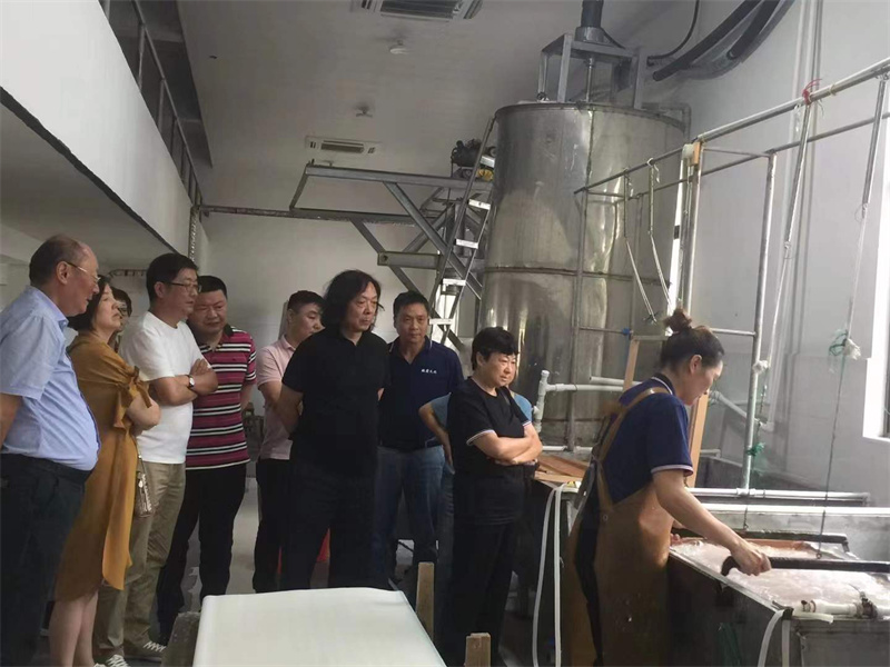 2021年7月25日,知名畫(huà)家汪家芳一行來(lái)公司指導(dǎo)并試筆。因紙結(jié)緣各位上海的各位老師,紙緣難得。
